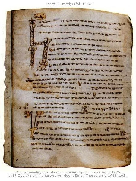 Над 8000 ръкописа и старопечатни книги се съхраняват в най-стария действащ православен манастир – Синайския манастир „Света Екатерина“ в Египет. Създаден през ІV век, манастирът е обновен през VІ в. по време на управлението на император Юстиниан Велики. През вековете в манастира живеят монаси от различен произход, в т.ч. за дълъг период от време и български. Именно нашите сънародници пренасят от България, пишат и преписват в манастира ръкописи на старобългарски език, включително и няколко, написани на глаголица.